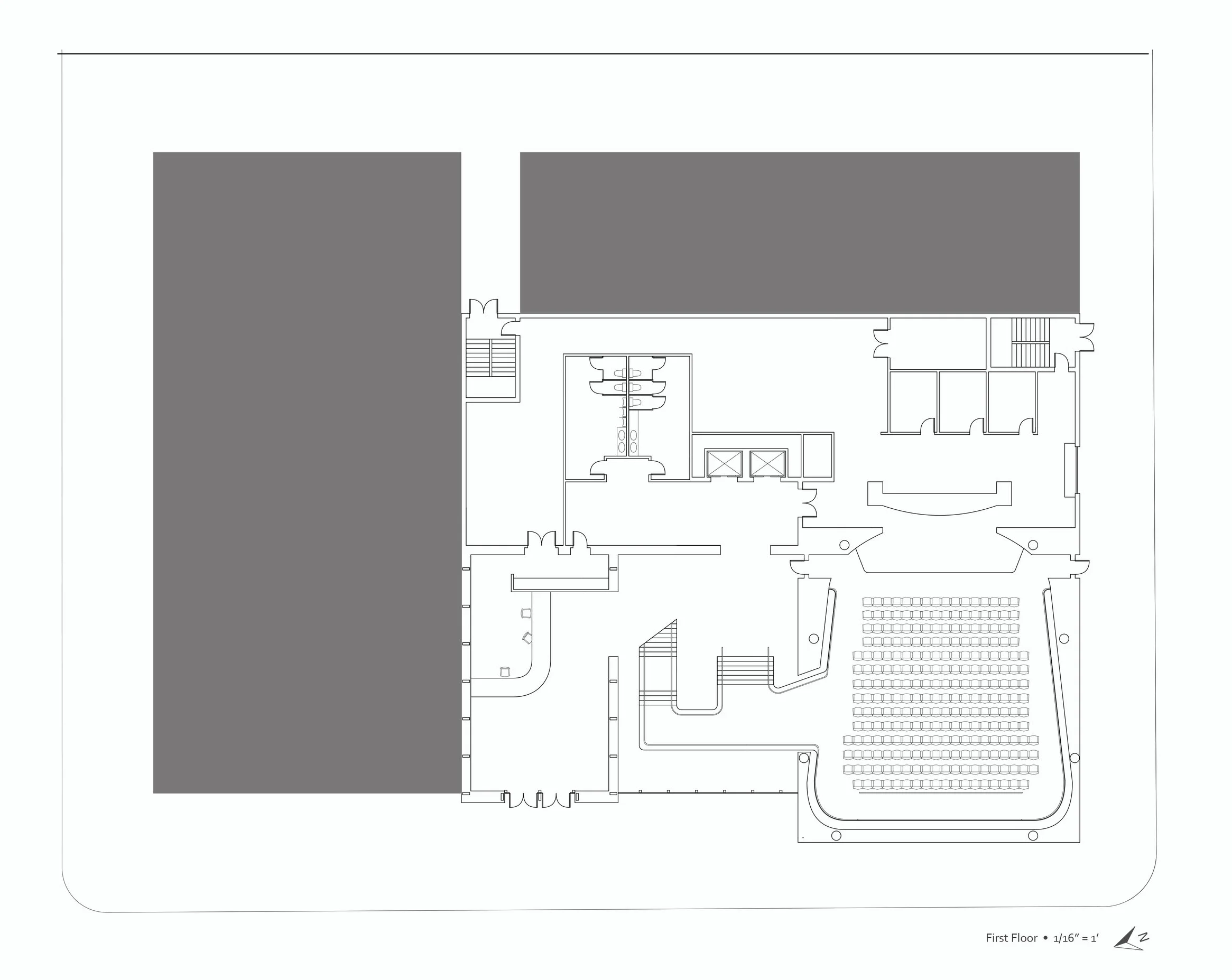First Floor_Street Level - The construction of the first floor aims to enclose all programmatic elements within a stone base.