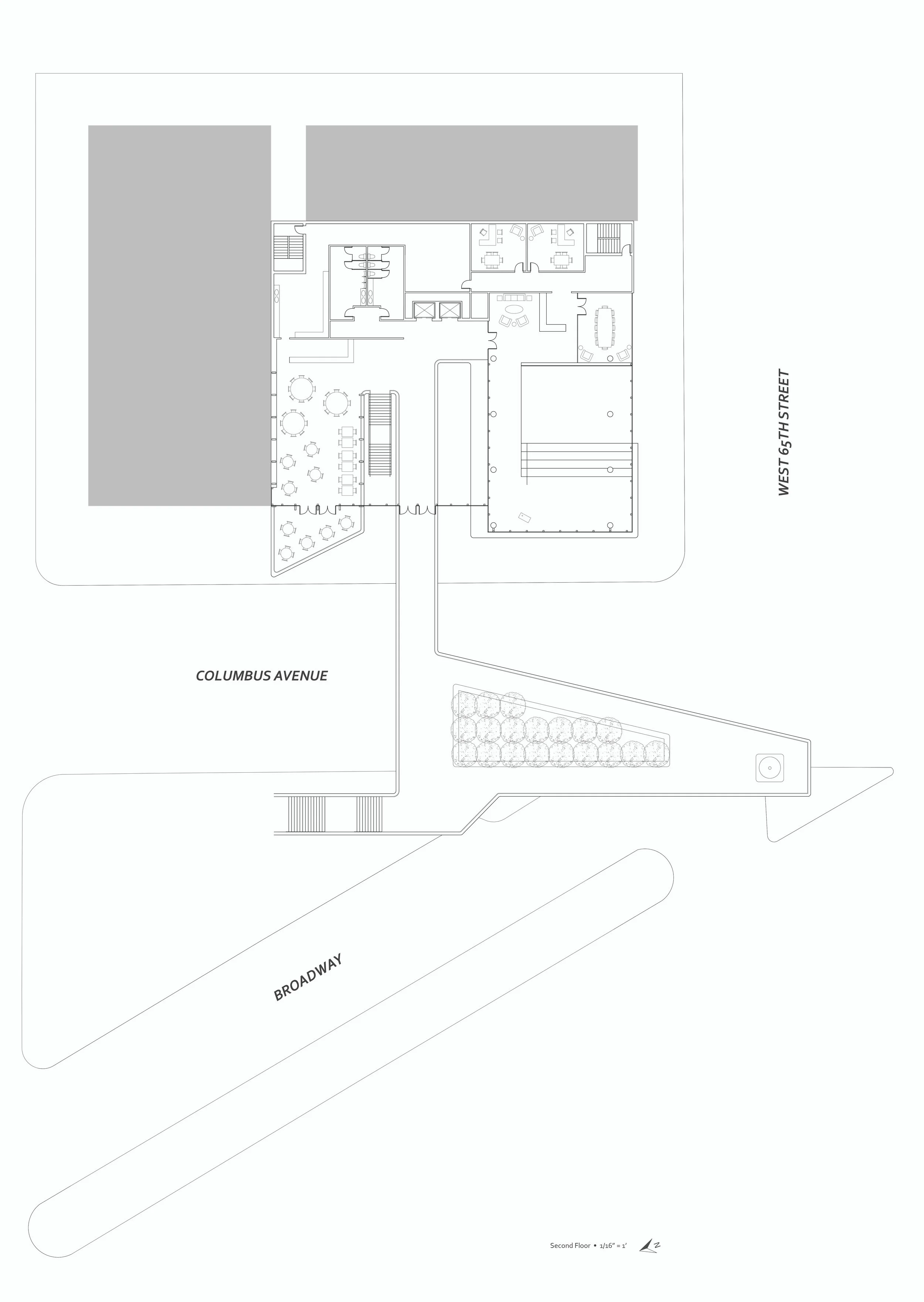 Second Level_The main access point of the school includes an above ground plaza that invites the public in.